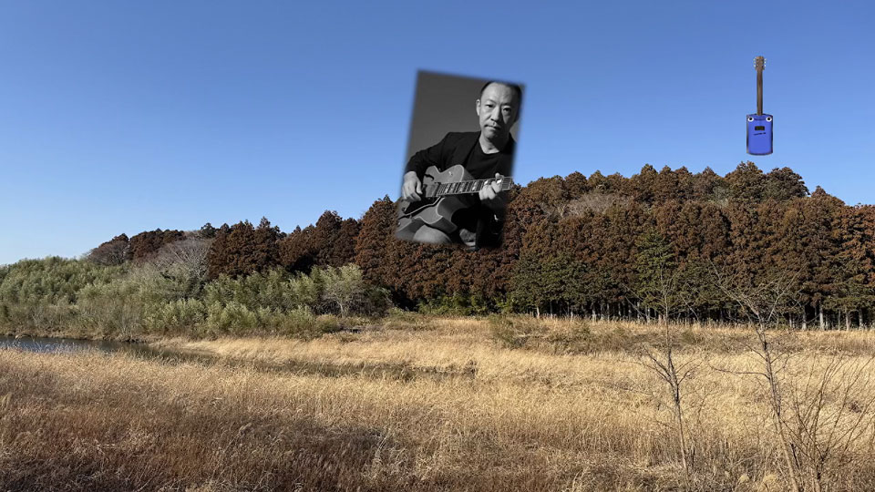 Solo guitar time—blues-focused—over a photo I took from the train window around Hirono.