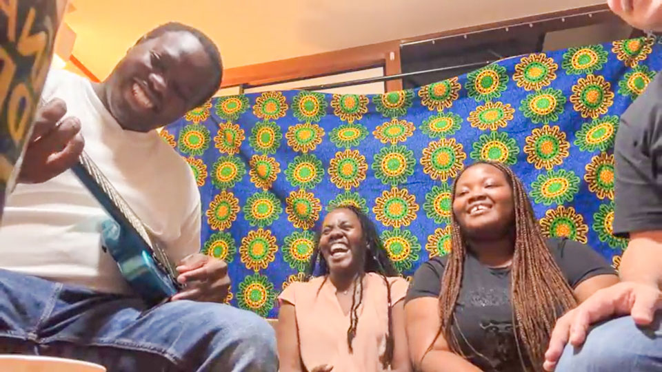 Agnes さんのインターン卒業にて打ち上げ。お疲れさまでした! (Ruyonga ギター中)