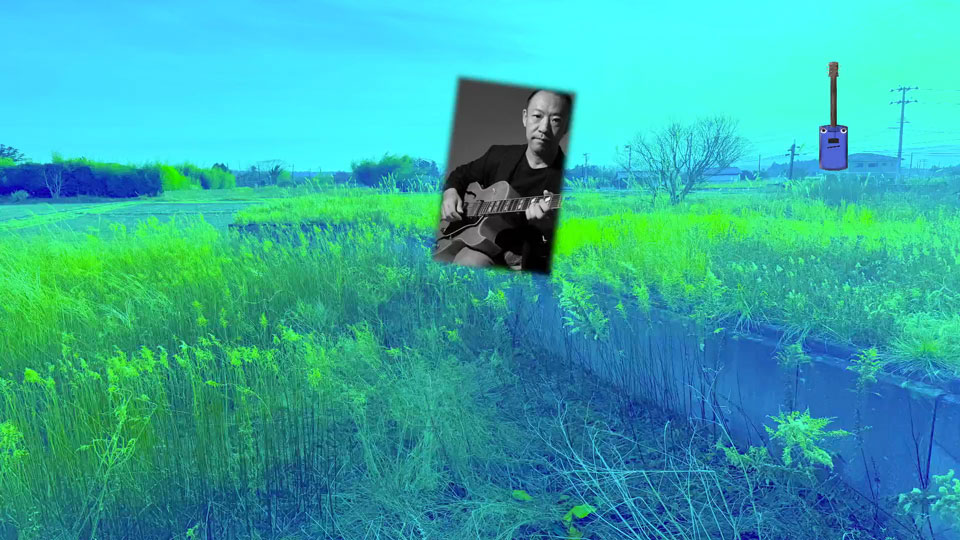 Solo guitar time—blues-focused—over a photo I took from the train window around Hirono.